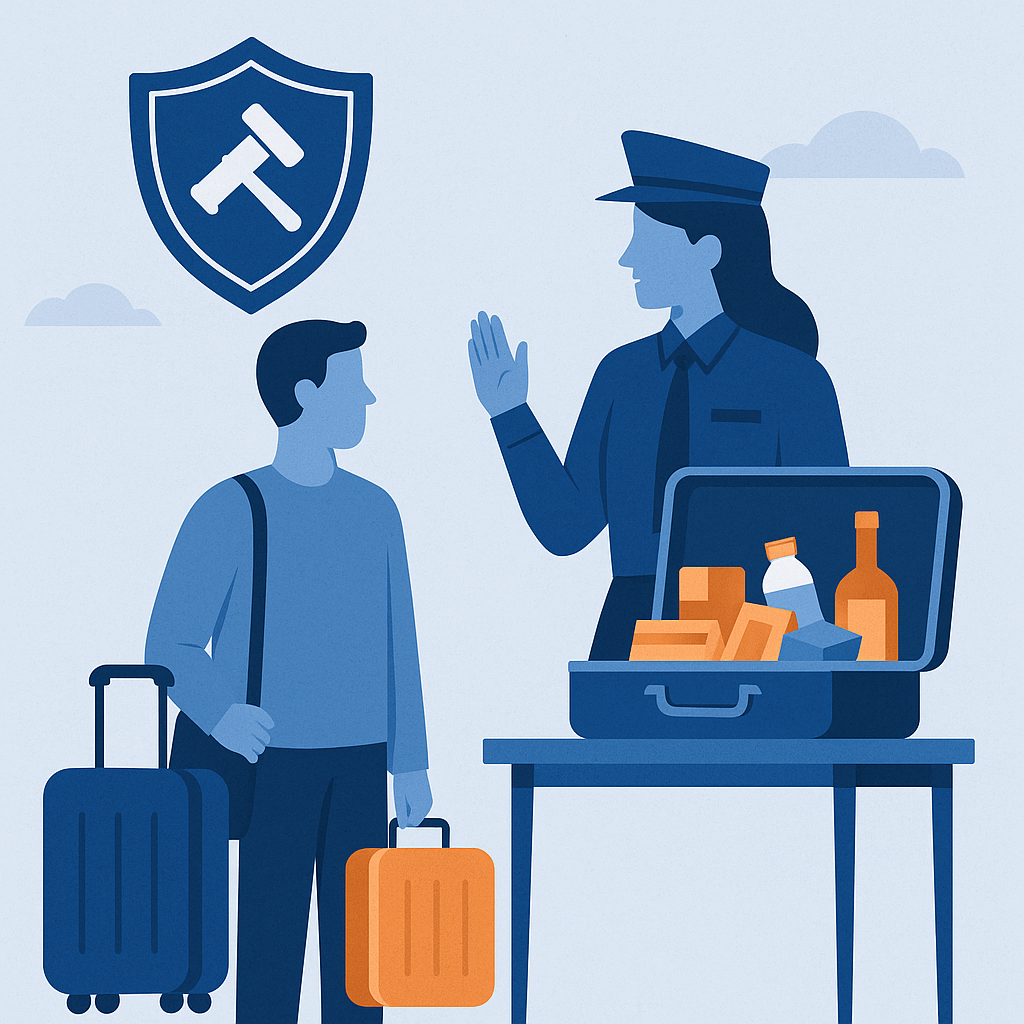 Isso inclui alertas sobre itens sujeitos à fiscalização ou declaração na alfândega, como bebidas alcoólicas, produtos eletrônicos, tabaco, joias, obras de arte e mercadorias de alto valor.